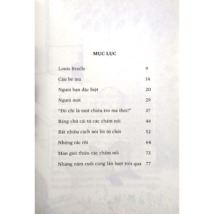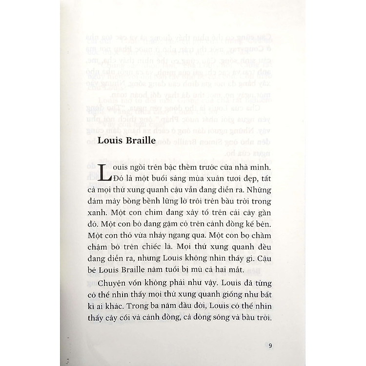 - Cuốn sách kể về cuộc đời và sự nghiệp của Louis Braille, người sáng chế ra hệ thống chữ nổi cho người mù.