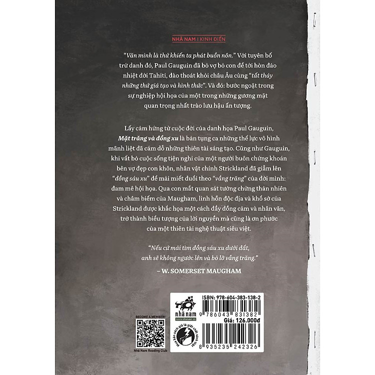 “Mặt trăng và đồng xu” mở ra cho chúng ta một không gian để suy ngẫm về cuộc sống, về cái đẹp và giá trị của sự tự do. Như Gauguin đã từng nói, “Văn minh là thứ khiến ta phát buồn nôn”, điều này có thể khiến bạn tự hỏi: Liệu bạn có đang sống trong một thế giới giả tạo? Hãy để DocGia.vn giúp bạn so sánh giá và tìm ra những tác phẩm quý giá như thế này!