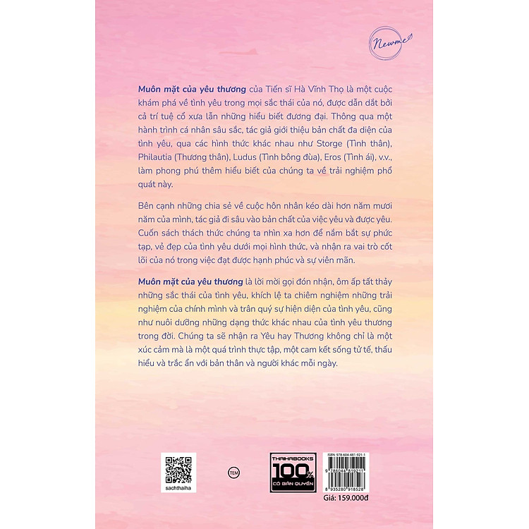 Bạn có bao giờ tự hỏi yêu thương thực sự là gì? Trong cuộc sống hiện đại, khi mà mỗi ngày chúng ta đối mặt với rất nhiều áp lực, dường như khái niệm yêu thương trở nên phức tạp hơn bao giờ hết. Có thể bạn thường nghe câu “Yêu thương là sức mạnh lớn nhất”, nhưng liệu chúng ta đã hiểu hết về nó chưa? Cuốn sách Muôn mặt của yêu thương của Tiến sĩ Hà Vĩnh Thọ sẽ đưa bạn vào một hành trình khám phá sâu sắc về tình yêu, từ những khía cạnh giản dị nhất cho đến những biểu hiện phức tạp trong cuộc sống.