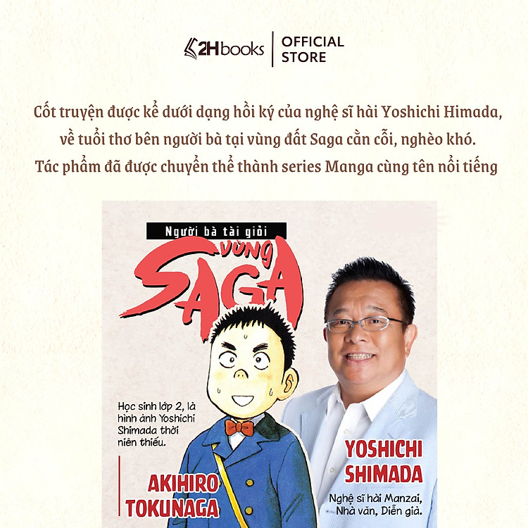 Người Bà Tài Giỏi Vùng SaGa được xây dựng dựa trên hồi ký của nghệ sĩ hài Yoshichi Shimada, người đã chia sẻ những kỷ niệm về tuổi thơ bên người bà tại vùng đất cằn cỗi Saga. Câu chuyện xoay quanh Akihiro, cậu con trai út trong gia đình có hai anh em, và những trải nghiệm đầy ý nghĩa mà cậu có được trong thời gian sống cùng bà. Qua từng trang sách, độc giả sẽ cảm nhận được không khí của một vùng quê nghèo khó nhưng đầy ắp tình thương, nơi mà những bài học cuộc sống được truyền tải một cách giản dị nhưng sâu sắc.