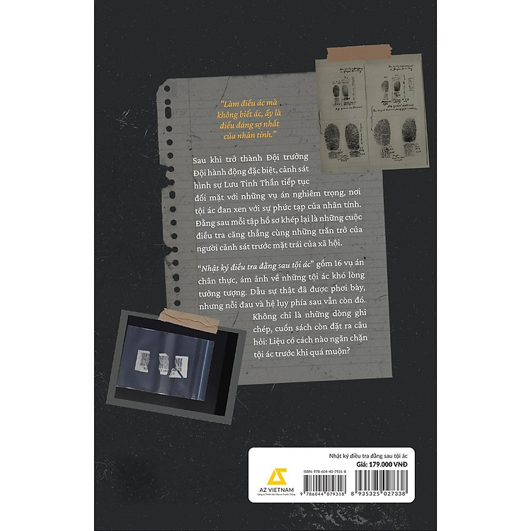 Không chỉ cung cấp kiến thức, “Nhật Ký Điều Tra: Đằng Sau Tội Ác” còn truyền cảm hứng mạnh mẽ cho độc giả. Đây là lựa chọn tuyệt vời cho những ai muốn tìm nguồn động lực mới. Hãy tham khảo ngay bảng giá bên dưới để mua sách dễ dàng và tiết kiệm hơn.”