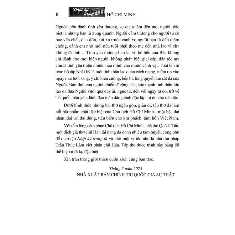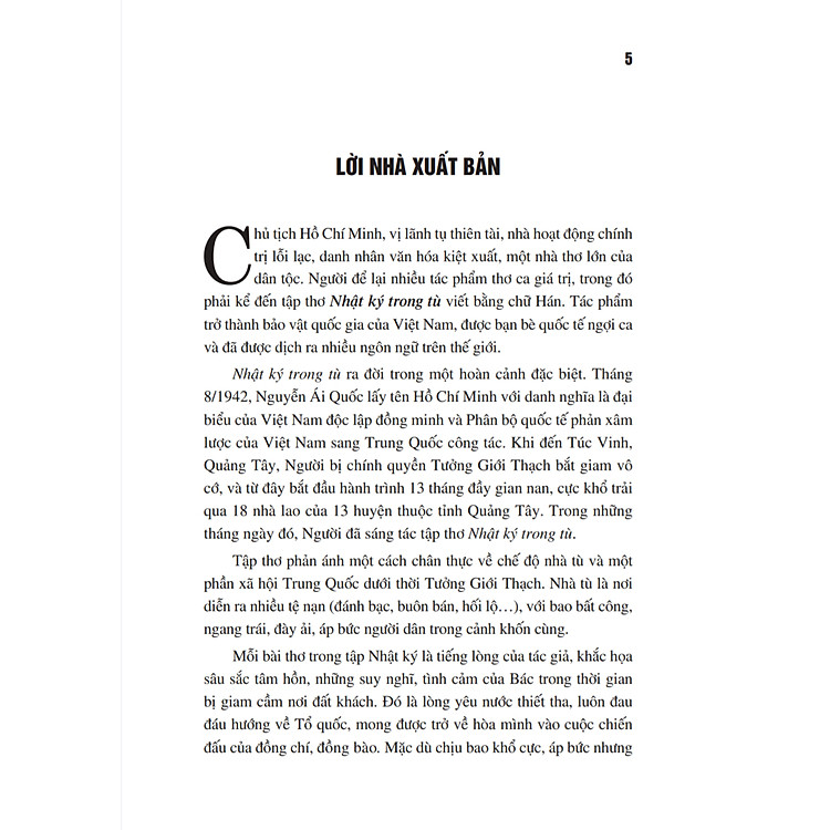 - Sách “Nhật ký trong tù” của Chủ tịch Hồ Chí Minh.