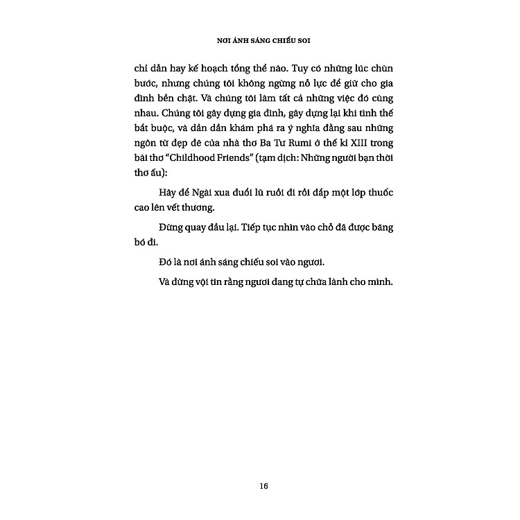 Cuốn sách Nơi Ánh Sáng Chiếu Soi không chỉ đơn thuần là một hồi ký, mà còn là một hành trình khám phá bản thân và gia đình qua những thăng trầm trong cuộc sống. Như Jill đã từng nói: “Chúng ta luôn có thể tìm thấy ánh sáng trong những lúc tối tăm.” Vậy, bạn có sẵn lòng tìm kiếm ánh sáng trong cuộc sống của mình không?
