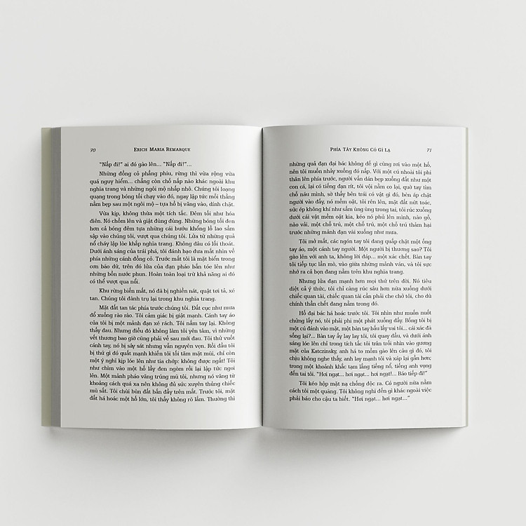 Phía Tây Không Có Gì Lạ không chỉ đơn thuần là một tác phẩm văn học về chiến tranh. Nó khắc họa chân thực những trải nghiệm của những thanh niên bị cuốn vào vòng xoáy của cuộc chiến. Từ những giây phút bình yên trong lớp học cho đến cảnh tượng tàn khốc trên chiến trường, cuốn sách phác họa rõ nét sự chuyển mình của con người khi đối diện với cái chết và nỗi đau. Qua từng trang viết, độc giả sẽ cảm nhận được sự mâu thuẫn giữa lý tưởng và thực tế, giữa tuổi trẻ và trách nhiệm.