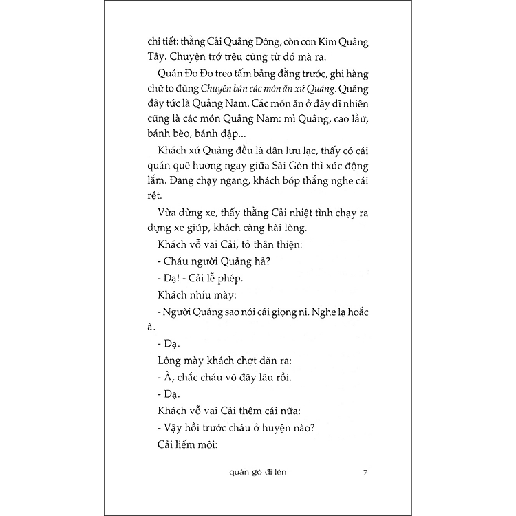 Cuốn sách không chỉ mang đến cho bạn những câu chuyện thú vị mà còn giúp bạn cảm nhận sâu sắc về giá trị của quê hương, gia đình và những kỷ niệm đáng nhớ. “Mua Quán Gò Đi Lên” là một tác phẩm thích hợp cho những ai yêu thích văn học, muốn tìm hiểu về văn hóa ẩm thực và những giá trị tinh thần trong cuộc sống. Hãy đến Tiki Trading để sở hữu ngay cuốn sách này và trải nghiệm những cảm xúc sâu lắng mà nó mang lại!