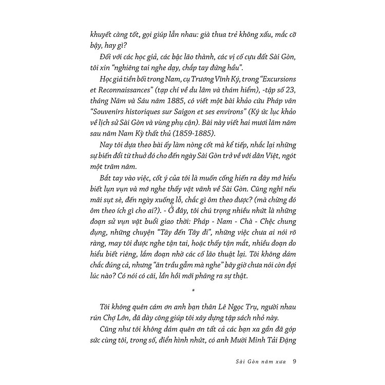 Có bao giờ bạn đứng giữa lòng Sài Gòn và tự hỏi: thành phố này đã trải qua những gì để trở thành như ngày hôm nay? Dường như mỗi con phố, mỗi góc nhỏ đều chứa đựng một câu chuyện, một ký ức. Cuốn sách “Sài Gòn Năm Xưa” sẽ đưa bạn trở về những năm tháng trước đây, nơi mà những dấu ấn lịch sử và văn hóa vẫn còn hiện hữu, để từ đó, giúp bạn hiểu rõ hơn về chính thành phố đang sống. Cuốn sách này sẽ giúp bạn cảm nhận sâu sắc hơn về Sài Gòn, không chỉ qua hình ảnh mà còn qua tâm tư người dân nơi đây.