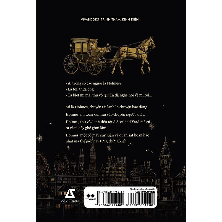 Ngoài việc là một tác phẩm kinh điển trong thể loại trinh thám, bộ sách này còn là một món quà tuyệt vời cho những ai yêu thích văn chương và tìm kiếm những câu chuyện đầy trí tuệ. Với giá bìa chỉ 99.000 VNĐ, “Sherlock Holmes Tuyển Tập” xứng đáng có mặt trong tủ sách của bạn. Đừng bỏ lỡ cơ hội khám phá những vụ án đầy tính nghệ thuật và trí tuệ này. Hãy đặt hàng ngay hôm nay để trở thành một phần của cuộc phiêu lưu cùng Sherlock Holmes!
