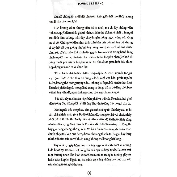 Trong cuốn sách, bạn sẽ theo chân Arsène Lupin trong những cuộc phiêu lưu thú vị, từ việc đánh cắp những bảo vật quý giá đến việc chống lại những kẻ thù nguy hiểm. Mỗi câu chuyện là một bài học về sự thông minh, sự dũng cảm và sự khéo léo, khiến bạn không chỉ giải trí mà còn suy ngẫm về bản chất của con người.