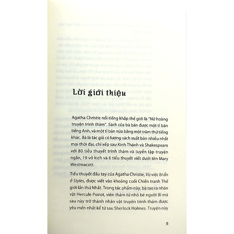 So với những cuốn trinh thám khác của Agatha Christie thì cuốn này có phần kém hay hơn hẳn tuy nhiên đối với mình nội dung nói chung cũng khá là ổn,phần giới thiệu nhân vật,mối quan hệ giữa họ chiếm gần nửa cuốn sách hơn nữa cũng khá nhiều nghi phạm phải xem kĩ để nhớ,nhiều tình tiết còn hơi dài dòng cũng may là khúc cuối cũng có chút bất ngờ và ngạc nhiên về chân tướng hung thủ.Bìa sách rất đẹp,đọc xong truyện là hiểu ra ý nghĩa được đọc bookcare nên càng đẹp hơn,giấy rất nhẹ sờ cực đã,với mình thì cuốn này đọc cũng khá là được,mong rằng nxb sẽ cho ra nhiều tác phẩm của Agatha Christie hơn.