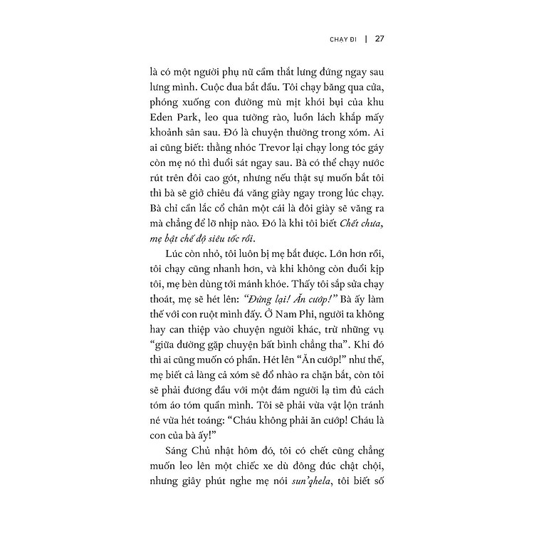 Cuốn tự truyện này không chỉ đơn thuần là một hồi ký, mà còn là một bức tranh chân thực về cuộc sống dưới chế độ Apartheid tại Nam Phi. Trevor Noah kể lại câu chuyện của mình với sự hóm hỉnh và chân thành, từ những ngày tháng khó khăn bên mẹ và những cuộc phiêu lưu thú vị trong một xã hội phân biệt. Tác giả không ngại ngần chia sẻ về những trải nghiệm bi kịch, nhưng cũng không thiếu những khoảnh khắc hài hước và đáng nhớ. “Trevor Noah – Đứa Con Phi Pháp” là một hành trình đầy cảm xúc qua các kỷ niệm ngọt ngào và đắng cay, phản ánh rõ nét bản chất của con người và xã hội.
