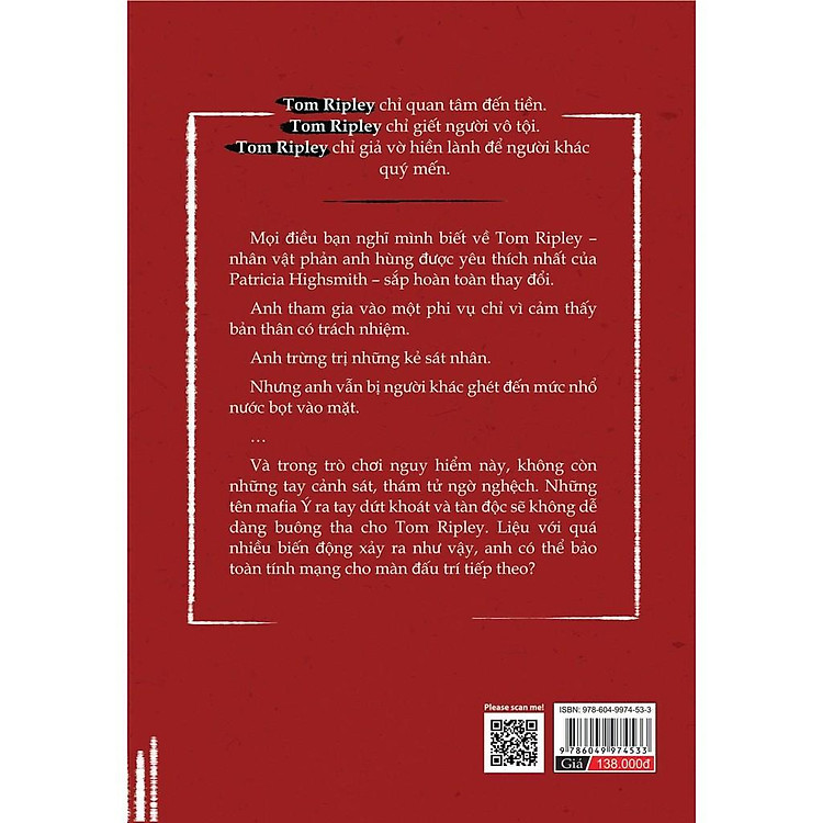 Trò Chơi Của Ripley không chỉ đơn thuần là một câu chuyện về tội ác, mà còn là một hành trình khám phá bản chất con người. Tom Ripley, một kẻ lừa đảo tài ba, bị cuốn vào một trò chơi chết người mà trong đó, mọi lựa chọn đều ẩn chứa những rủi ro. Cuốn sách khéo léo vẽ lên bức tranh về sự giả dối, lòng tham và những mưu đồ bất chính, trong khi vẫn giữ được nhịp điệu lôi cuốn, khiến người đọc không thể rời mắt.