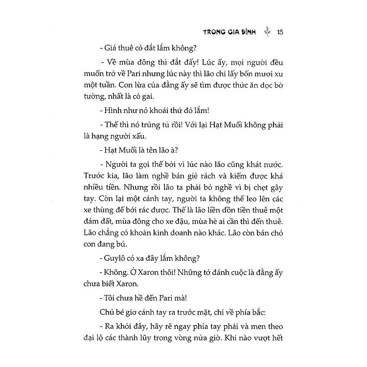 Lúc đọc nửa đầu các bạn nên cố gắng vượt qua để đến được với nửa cuối vì nửa đầu khá dài và không có điểm nhấn thu hút người đọc lắm. Đoạn nửa sau mới bắt đầu li kì và gay cấn. Các tình tiết hấp dẫn bắt đầu xuất hiện là lôi cuốn người đọc hơn. Nên mua nếu đã có quyển Không gia đình.
