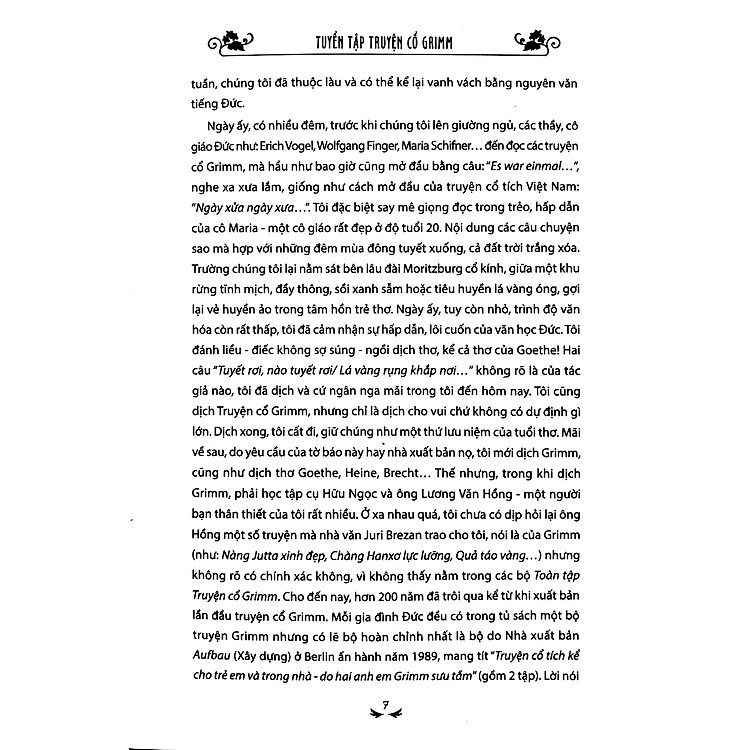 Tuyển Tập Truyện Cổ Grimm (2022) là một trong những bộ sách không thể thiếu trong tủ sách của các em thiếu nhi. Các câu chuyện cổ tích trong bộ tuyển tập này không chỉ mang đến sự giải trí mà còn chứa đựng những bài học quý giá về tình bạn, tình yêu và sự dũng cảm. Đây là cơ hội để trẻ em khám phá thế giới kỳ diệu của các chàng hoàng tử dũng cảm và những nàng công chúa xinh đẹp, nơi mà trí tưởng tượng bay cao và những điều kỳ diệu luôn có thể xảy ra.