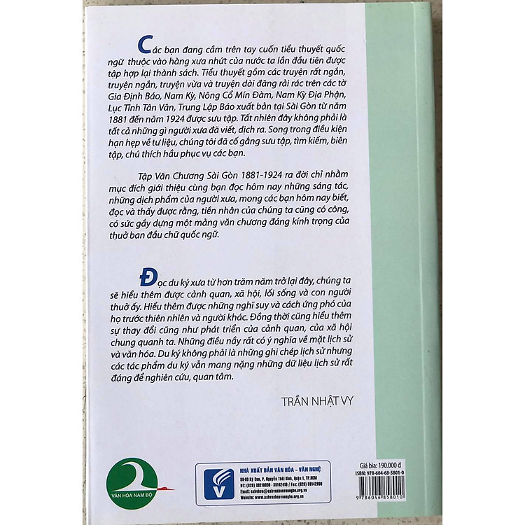 Các thông tin khác: Văn Chương Sài Gòn 1881-1924 Tập 4: Du Ký và Những Truyện Khác