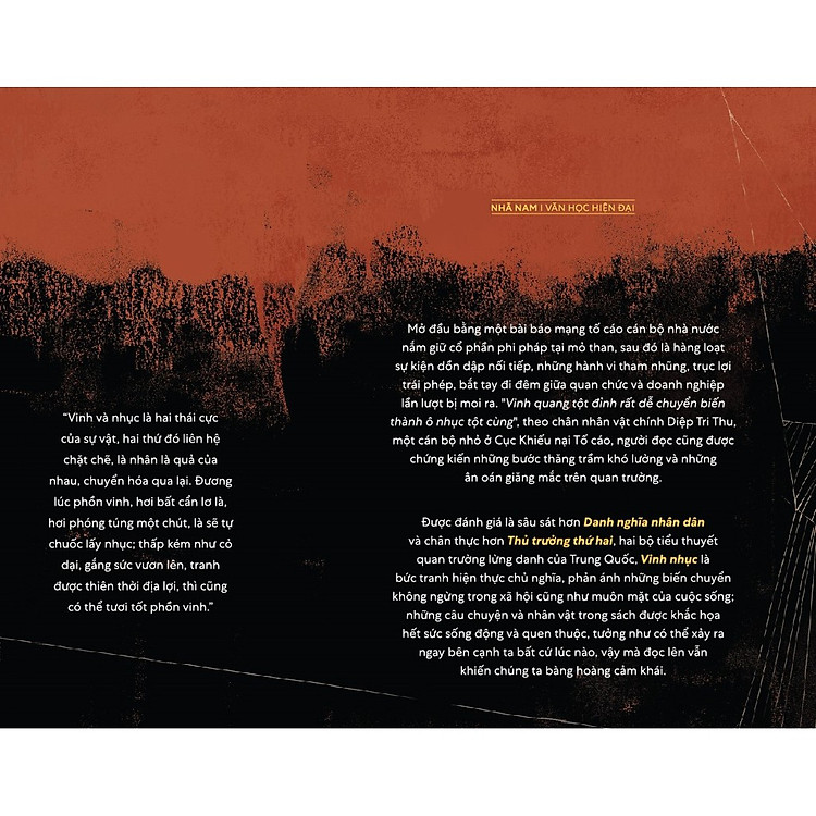 Vinh Nhục là một tác phẩm tiểu thuyết quan trường khắc họa sâu sắc bức tranh của cuộc sống chính trị và xã hội qua lăng kính của những nhân vật đầy màu sắc. Tác phẩm dẫn dắt người đọc vào những mối quan hệ phức tạp, những cuộc chiến quyền lực, và cả những sự phản bội tàn nhẫn. Tác giả Sở Ngư khéo léo vạch trần tính chân thực của những mưu mô và toan tính, giúp chúng ta nhận ra rằng, trong chính trị, sự vinh quang đôi khi lại ẩn chứa những mảng tối không thể nhìn thấy.