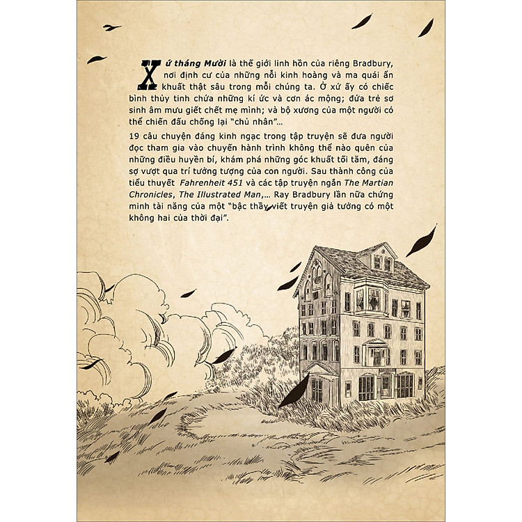 Xứ tháng Mười là một tác phẩm văn học độc đáo của Ray Bradbury, mang đến cho độc giả một thế giới đầy bí ẩn và ma quái. Tại Tiki Trading, bạn có thể dễ dàng sở hữu cuốn sách này để khám phá những chiều sâu tâm hồn của nhân vật và những nỗi kinh hoàng ẩn chứa bên trong. Tác phẩm không chỉ đơn thuần là một câu chuyện mà còn là một cuộc hành trình vào tâm trí con người, nơi mà những ký ức và cơn ác mộng sống dậy.