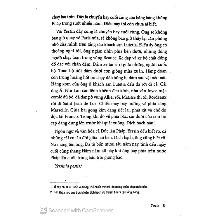 Đọc cuốn sách này nhân dịp virus Corona (CoVID-19) hoành hành. Có người so sánh nỗi sợ hãi bao trùm thế giới bây giờ với thời đối mặt với nạn dịch hạch, và từ đó dẫn mình tới đọc về Yersin – người đầu tiên xác định được virus và tạo ra vắc-xin chống dịch hạch. Mong rằng CoVID-19 sớm bị loài người đánh bại, và trở thành căn bệnh có thể yên tâm phòng tránh và chữa trị như các đồng nghiệp dịch hạch, sốt xuất huyết… của nó trước đây.