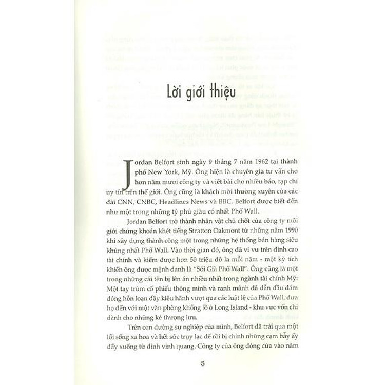 - Tác giả: J Belfort, huyền thoại trong ngành môi giới chứng khoán phố Wall.
