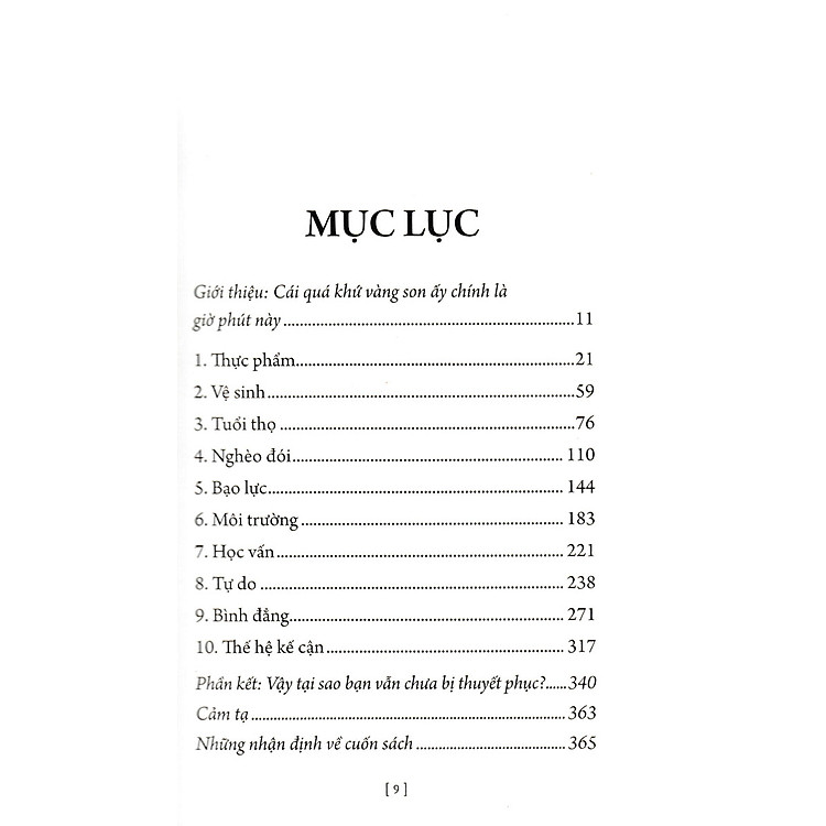 Cuốn sách không chỉ là một cái nhìn tích cực về những gì con người đã đạt được, mà còn là một lời nhắc nhở rằng chúng ta vẫn còn nhiều điều để hy vọng. “Chúng ta đang sống ở thời kỳ hoàng kim.” Hãy thử đọc và xem liệu bạn có thấy mình đồng ý với điều này không nhé!