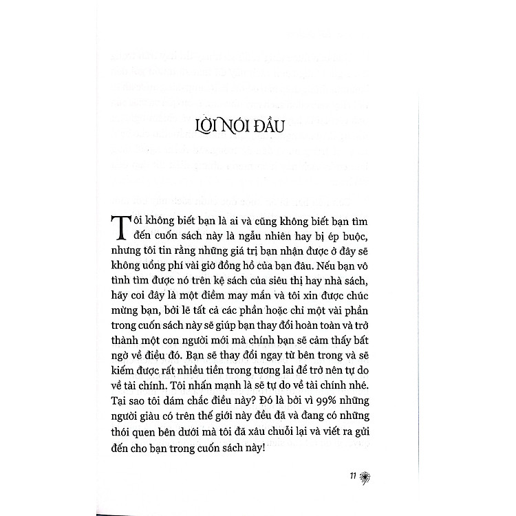 Nói nôm na là cuốn sách không chỉ hướng dẫn bạn cách kiếm tiền, mà còn giúp bạn thay đổi tư duy về tiền bạc, môi trường sống và mối quan hệ. Tác giả khẳng định rằng tư duy chiếm tới 80% sự thành công của mỗi người, và nếu bạn muốn thay đổi cuộc sống, trước tiên, hãy thay đổi cách nhìn nhận của mình.