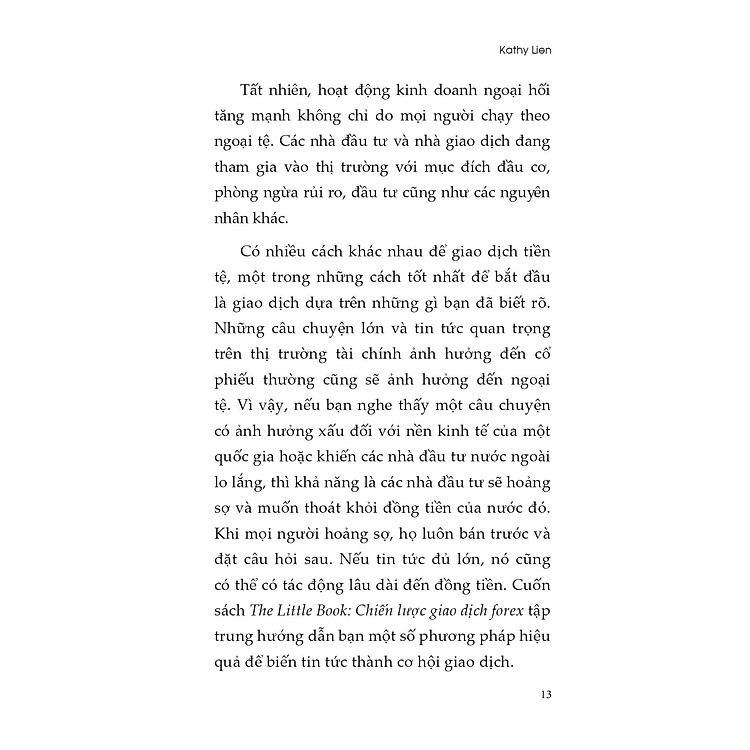 - Tác giả: Kathy Lien chia sẻ kiến thức về cơ hội và công cụ trong giao dịch forex.