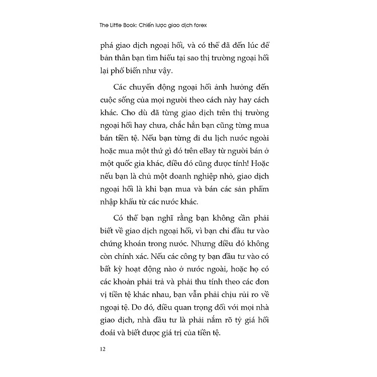 “The Little Book: Chiến lược giao dịch forex” là một cuốn sách giúp bạn nắm bắt những kiến thức cơ bản cần thiết để tham gia vào thị trường ngoại hối. Thị trường forex từng là lĩnh vực độc quyền của các ngân hàng lớn, quỹ đầu tư và các tập đoàn đa quốc gia. Tuy nhiên, với sự phát triển của công nghệ Internet và các nhà môi giới trực tuyến, giờ đây bất kỳ ai cũng có thể tham gia vào thị trường này một cách dễ dàng hơn.