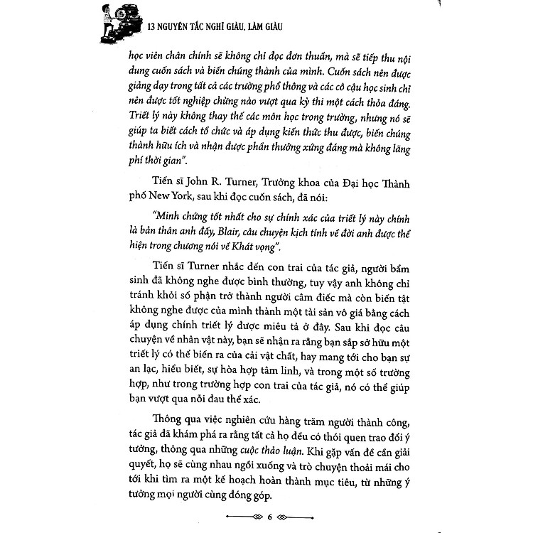 Nói nôm na là, cuốn sách này không chỉ đơn thuần là một cuốn hướng dẫn kiếm tiền. Nó mang đến cho bạn 13 nguyên tắc vàng, giúp bạn định hình tư duy và hành động để đạt được tự do tài chính. Tác giả đã khéo léo lồng ghép những câu chuyện thành công của các doanh nhân vĩ đại vào từng nguyên tắc, khiến cho việc học hỏi từ họ trở nên dễ dàng hơn bao giờ hết.