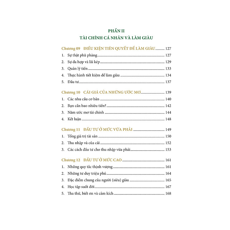 - Gồm hai phần: Khái niệm căn bản về tiền tệ và Tài chính cá nhân cùng cách làm giàu.
