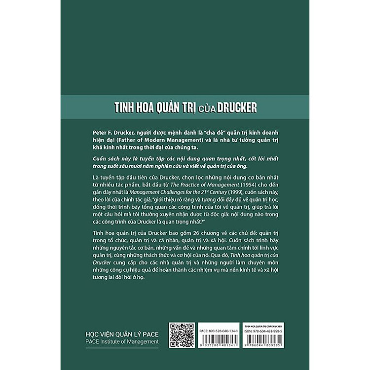Tinh Hoa Quản Trị Của Drucker là một tuyển tập tinh túy những ý tưởng và quan điểm của Peter Drucker sau hơn sáu thập kỷ nghiên cứu và giảng dạy về quản trị. Cuốn sách không chỉ là một cái nhìn tổng quan về quản trị học mà còn là một hướng dẫn thực tế cho những người làm công tác quản lý. Từ các tác phẩm nổi tiếng như The Practice of Management đến Management Challenges for the 21st Century, cuốn sách này chắt lọc và trình bày rõ ràng những nguyên tắc cơ bản, thách thức và cơ hội mà người quản lý cần nắm vững.