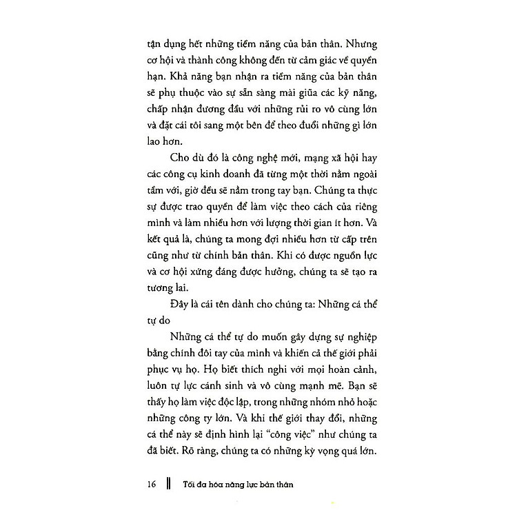 “Tối Đa Hóa Năng Lực Bản Thân” của tác giả Jocelyn K. Glei không chỉ đơn thuần là một cuốn sách hướng dẫn mà còn là một hành trình khám phá những yếu tố thiết yếu để phát triển sự nghiệp bền vững. Tác phẩm này tập trung vào bốn khía cạnh quan trọng: nắm bắt và tạo ra cơ hội, tích lũy kinh nghiệm, xây dựng quan hệ hợp tác, và đương đầu với rủi ro. Những yếu tố này không chỉ giúp bạn vững bước trên con đường sự nghiệp mà còn mang lại một cuộc sống trọn vẹn và đầy ý nghĩa.