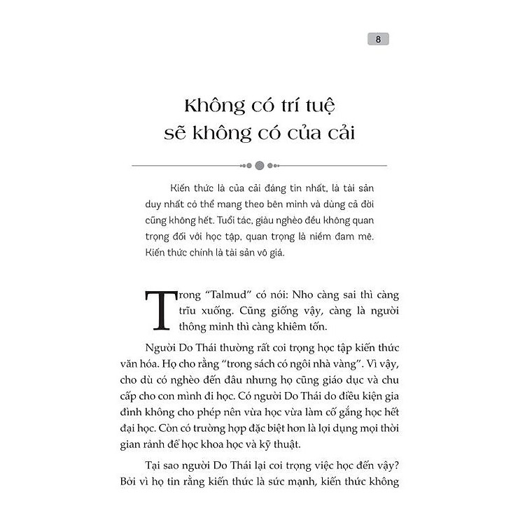 Cuốn sách này không chỉ đơn thuần là một cuốn sách về làm giàu, mà còn là một hành trình khám phá tư duy của một dân tộc. Như một người Do Thái đã từng nói: “Giá trị của trí tuệ không chỉ nằm ở việc kiếm tiền, mà còn ở cách chúng ta sống và chia sẻ”.