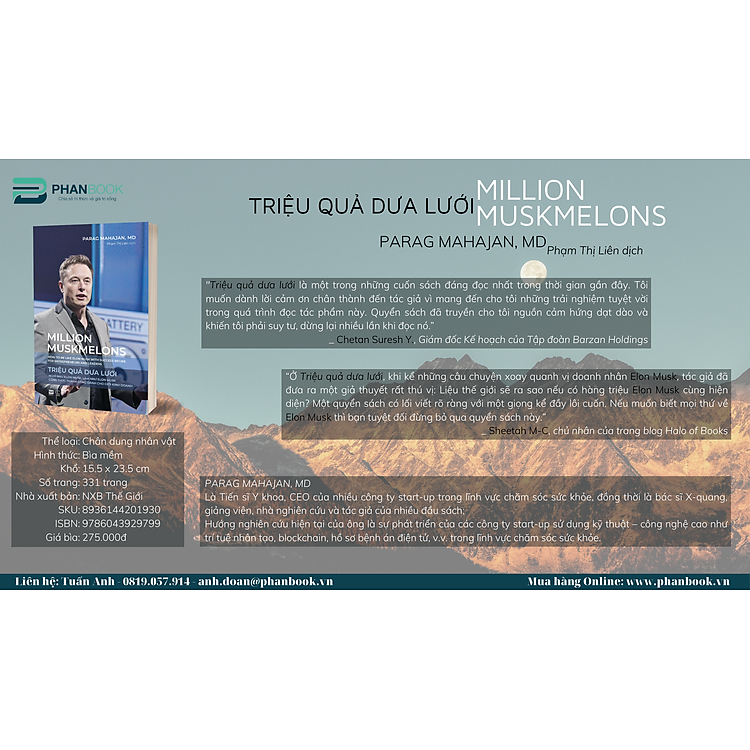 “Triệu Quả Dưa Lưới” là một tác phẩm độc đáo của tác giả Parag Mahajan, MD, nơi ông không chỉ khắc họa chân dung của Elon Musk mà còn lý giải những nguyên tắc mà Musk đã áp dụng để đạt được những thành công vang dội. Cuốn sách đưa ra những câu chuyện thú vị xung quanh cuộc đời và sự nghiệp của Musk, từ những khó khăn ban đầu cho đến những thành tựu vĩ đại trong lĩnh vực công nghệ và giao thông.