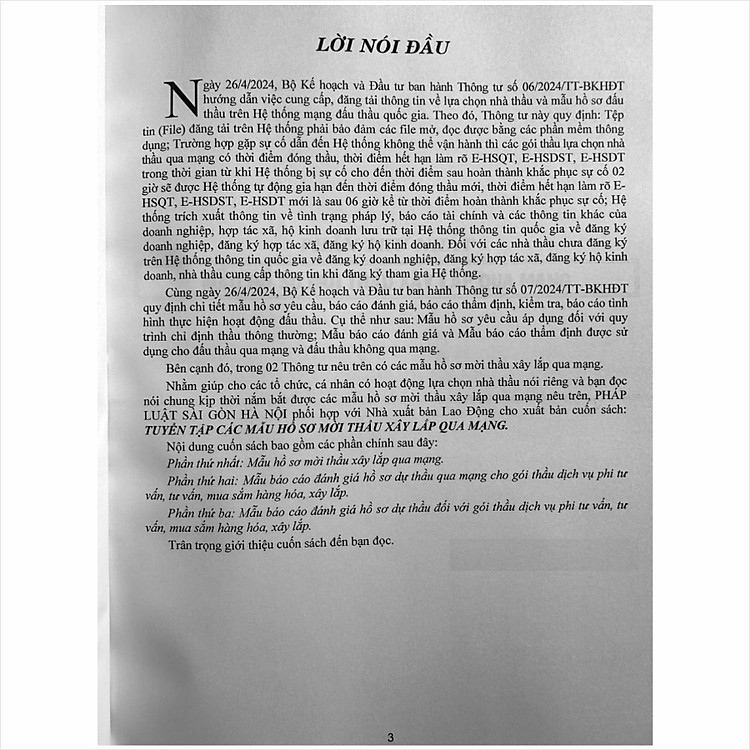 Tổng hợp nơi bán Tuyển Tập Các Mẫu Hồ Sơ Mời Thầu Xây Lắp Qua Mạng – Thông tư 06/2024/TT-BKHĐT – Thông tư số 07/2024/TT-BKHĐT (V2419D) uy tín, giá tốt nhất