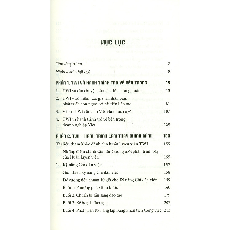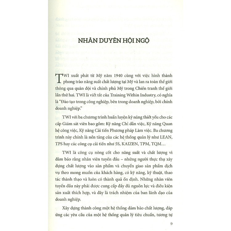 Nói nôm na là, cuốn sách này giới thiệu đến bạn phương pháp TWI (Training With Industry) – một cách tiếp cận hệ thống trong việc đào tạo nhân viên, từ quản lý cho đến công nhân. TWI không chỉ giúp nâng cao chất lượng sản phẩm và dịch vụ, mà còn giảm thiểu rủi ro và tiết kiệm nguồn lực. Mục tiêu cuối cùng? Đem lại năng suất tối ưu cho tổ chức mà vẫn đáp ứng được mong đợi của khách hàng.