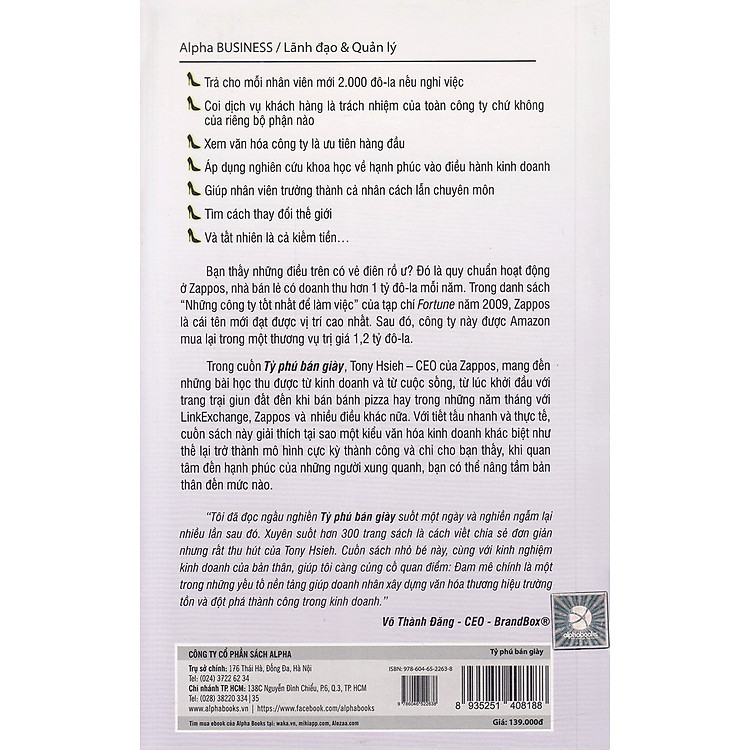 - Tác giả: Tony Hsieh chia sẻ hành trình từ khi khởi nghiệp ở tuổi 9 đến thành công với Zappos.