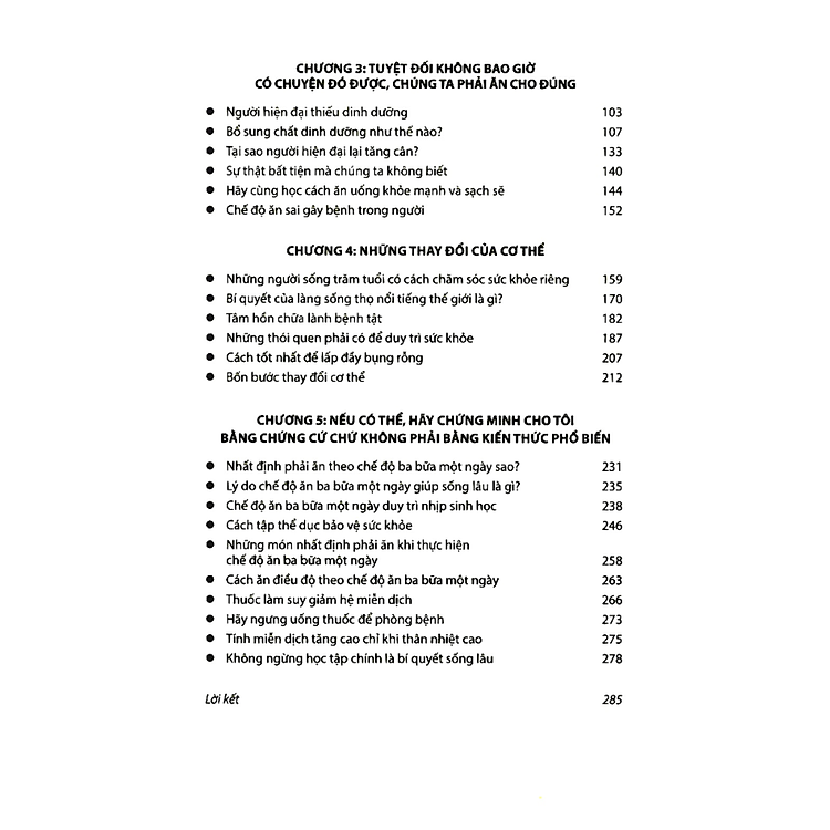 - Nội dung sách bao gồm các chương về trào lưu ăn uống và những thay đổi của cơ thể.