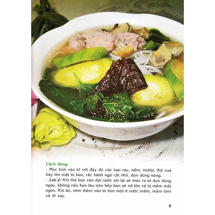 - Nội dung: Bao gồm 30 công thức bún đa dạng như bún mực, bún riêu, bún cá, bún ốc, bún chả cua và nhiều món khác.