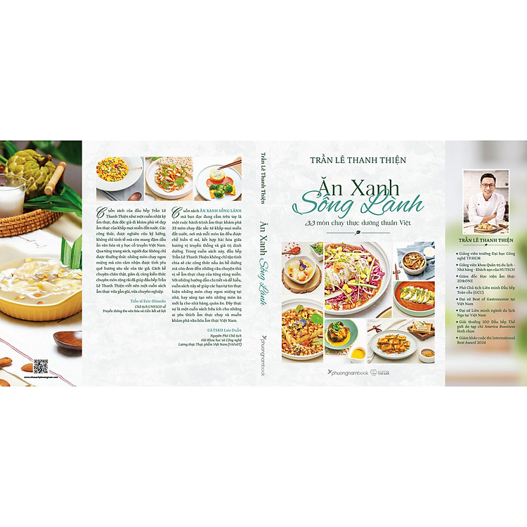 Từ hạt tiêu xanh Phú Quốc the cay, củ khoai mỡ Long An dẻo ngon, trái thanh long Bình Thuận đỏ thắm, cơm dừa non Bến Tre béo ngậy, tép tỏi đen Lý Sơn giàu dược tính, hạt muối Bạc Liêu đậm đà, lát khoai deo Quảng Bình gợi nhớ, vị tương bần Hưng Yên dậy hương… tác giả Trần Lê Thanh Thiện đã khéo léo kết hợp hài hòa hương – sắc – vị trong từng món ăn để tạo nên bức tranh ẩm thực chay hài hòa và tịnh lạc trong Ăn Xanh Sống Lành – 33 món chay thực dưỡng thuần Việt.