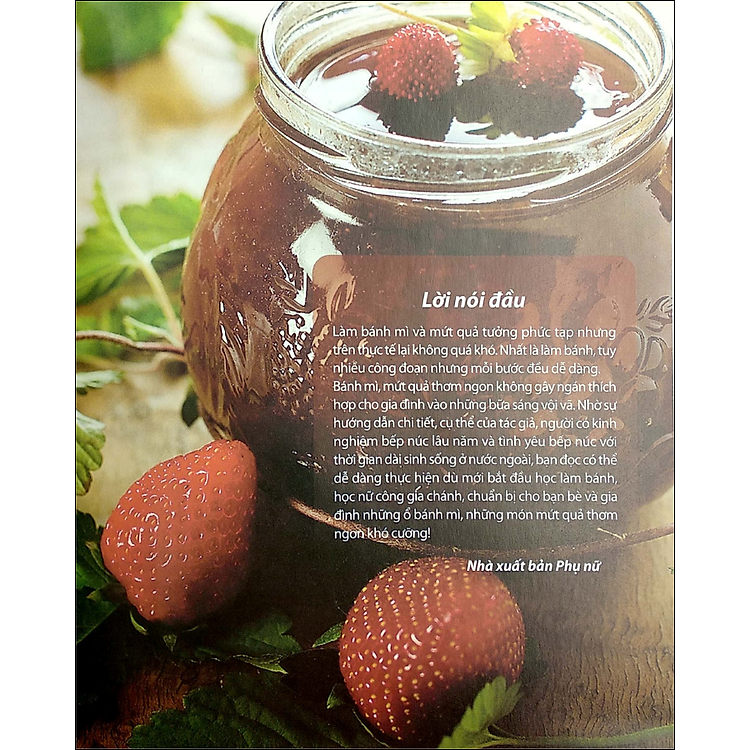 Bánh mì, mứt quả thơm ngon không gây ngán thích hợp cho gia đình vào những bữa sáng vội vã. Nhờ sự hướng dẫn chi tiết, cụ thể của tác giả, người có kinh nghiệm bếp núc lâu năm và tình yêu với công việc bếp núc với thời gian dài sinh sống ở nước ngoài, bạn đọc có thể dễ dàng thực hiện dù mới bắt đầu học làm bánh, học nữ công gia chánh, chuẩn bị cho bạn bè và gia đình những ổ bánh mì, những món mứt quả thơm ngon khó cưỡng!