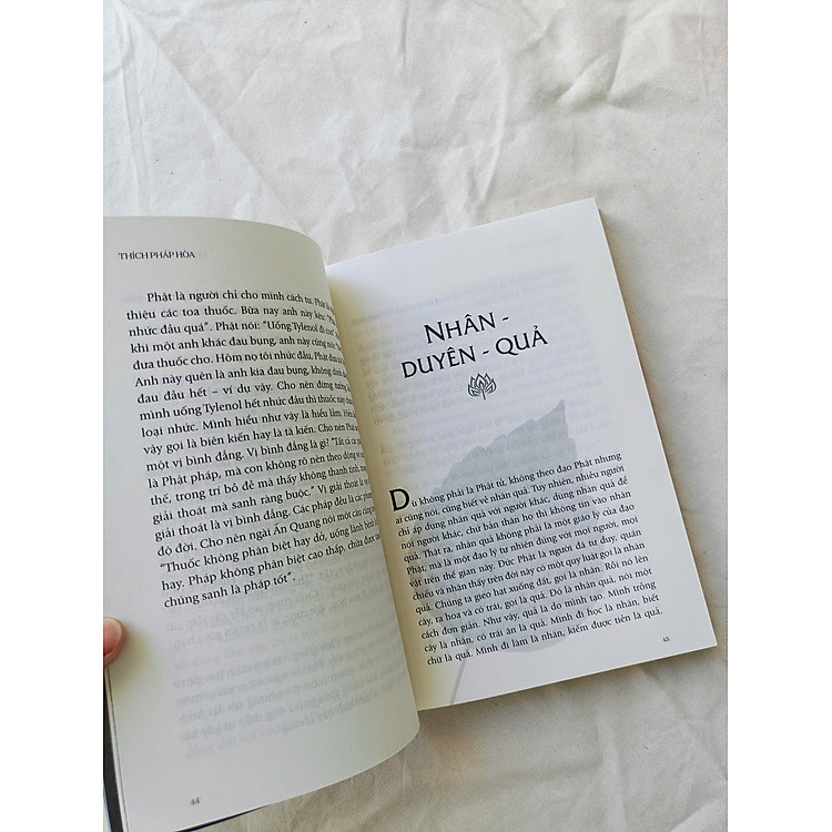 Trong quyển sách này, quý vị sẽ được tiếp cận Nhân Quả theo một cách giản dị qua những câu chuyện đời thường của thầy Thích Pháp Hòa. Trong khi ngôn ngữ của giáo lý thường là rào cản thì những câu chuyện vui, những ví dụ gần gũi lại có khả năng mang chúng ta đến gần hơn với sự thật của đời sống. Những lời chia sẻ và câu chuyện của thầy Pháp Hòa về các mối quan hệ và cách ứng xử trong xã hội như cha mẹ – con cái, vợ – chồng, thầy – trò, bạn bè, … cũng được ban biên tập tuyển chọn và giới thiệu đến quý bạn đọc. Thông qua đó, chúng ta thấy được “Phật pháp tại thế gian, bất ly thế gian giác” – Phật pháp không ở đâu xa ngoài đời sống thế gian.