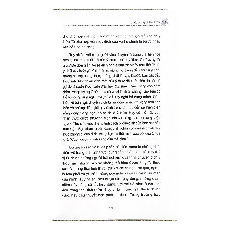 Trong BƯỚC NHẢY TÂM LINH, tác giả Steve Taylor đã cung cấp cho ta rất nhiều thông tin nghiên cứu cùng các ví dụ làm sáng tỏ những câu hỏi này, giúp ta hiểu hơn về trạng thái tỉnh thức, nhận diện những sai lầm và ngộ nhận phổ biến, biết cách vượt qua những trở ngại khi đối diện với trạng thái tâm lý Còn rất mới mẻ này.