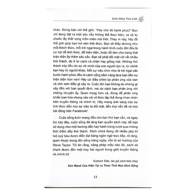 - Tựa sách: Bước Nhảy Tâm Linh – Tâm Lý Học Tỉnh Thức của tác giả Steve Taylor.