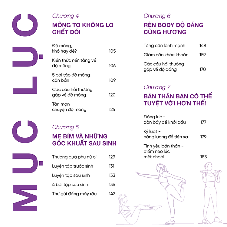 Việc tăng cân mất kiểm soát, vóc dáng sồ sề là một trong những nguyên nhân lớn khiến nhiều phụ nữ trở nên chán nản, tự ti, thậm chí trầm cảm sau sinh. Chương này sẽ truyền động lực cho các mẹ bỉm đứng lên tập ngay bằng cách: