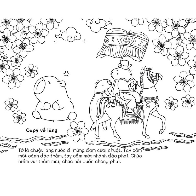 “Capybara – Funny Time – Thời gian vui vẻ” là một cuốn sách tô màu vô cùng ấn tượng và đáng yêu. Với những hình ảnh tinh tế và dịu dàng, cuốn sách mang đến một trải nghiệm chữa lành và lan tỏa tình yêu thương cho người đọc.