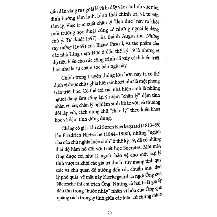 Sách hay. Kiến thức về hiện sinh rất chi tiết, rõ ràng. Mình mới nhập môn nên đọc có đôi chỗ hơi khó hiểu tí nhưng chịu tìm tòi sẽ ra. Bạn nào còn phân vân thì mua liền nhe, không phí tiền và thời gian đâu.