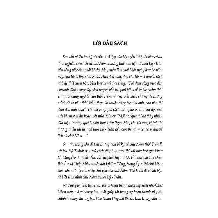 Chữ Nôm là một loại cổ tự được người Việt sáng tạo trên cơ sở chữ Hán để biểu đạt các từ thuần Việt, đọc theo âm Hán – Việt, tạo nên bộ chữ viết phổ thông cho tiếng Việt. Đây là phương thức duy nhất ghi lại lịch sử, văn hóa của dân tộc trong khoảng 10 thế kỷ (từ thế kỷ X đến thế kỷ XX). Sách trình bày những nghiên cứu về nguồn gốc, phương pháp cấu thành và diễn biến của chữ Nôm qua các giai đoạn lịch sử nước nhà thông qua những dấu vết, chứng tích lịch sử.Giá sản phẩm trên Tiki đã bao gồm thuế theo luật hiện hành. Bên cạnh đó, tuỳ vào loại sản phẩm, hình thức và địa chỉ giao hàng mà có thể phát sinh thêm chi phí khác như phí vận chuyển, phụ phí hàng cồng kềnh, thuế nhập khẩu (đối với đơn hàng giao từ nước ngoài có giá trị trên 1 triệu đồng)…..