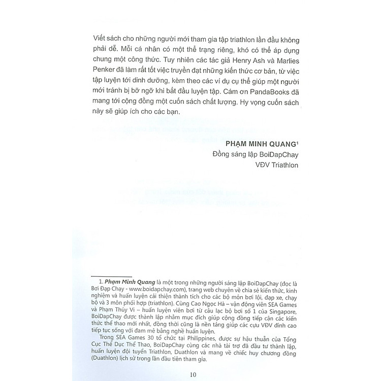 Đọc sách không chỉ là thu thập kiến thức, mà còn là nguồn cảm hứng bền bỉ cho bạn đọc. Nếu bạn yêu thích, CHƯƠNG TRÌNH LUYỆN TẬP THI ĐẤU 3 MÔN PHỐI HỢP CHO CỰ LY 70.3 là lựa chọn đáng cân nhắc.