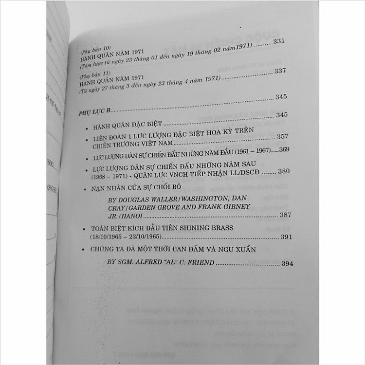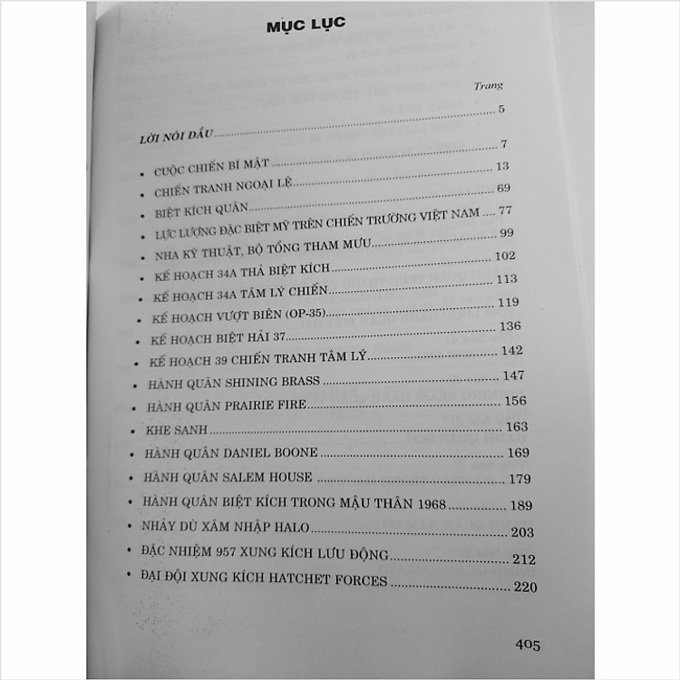 - Nội dung sách bao gồm nhiều phần liên quan đến chiến tranh và biệt kích tại Việt Nam