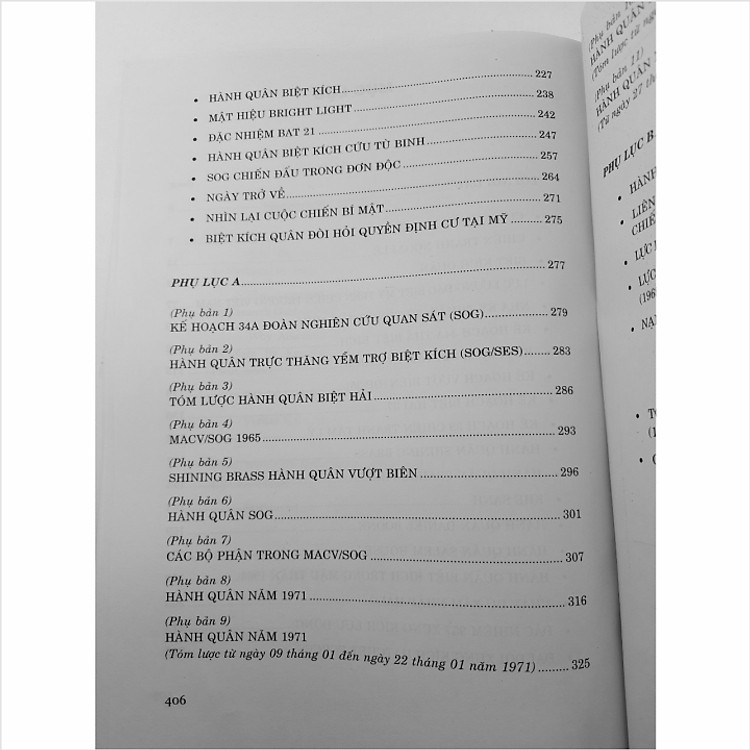 - Đặc biệt có các phụ lục chi tiết về các kế hoạch và hành quân đặc biệt trong chiến tranh
