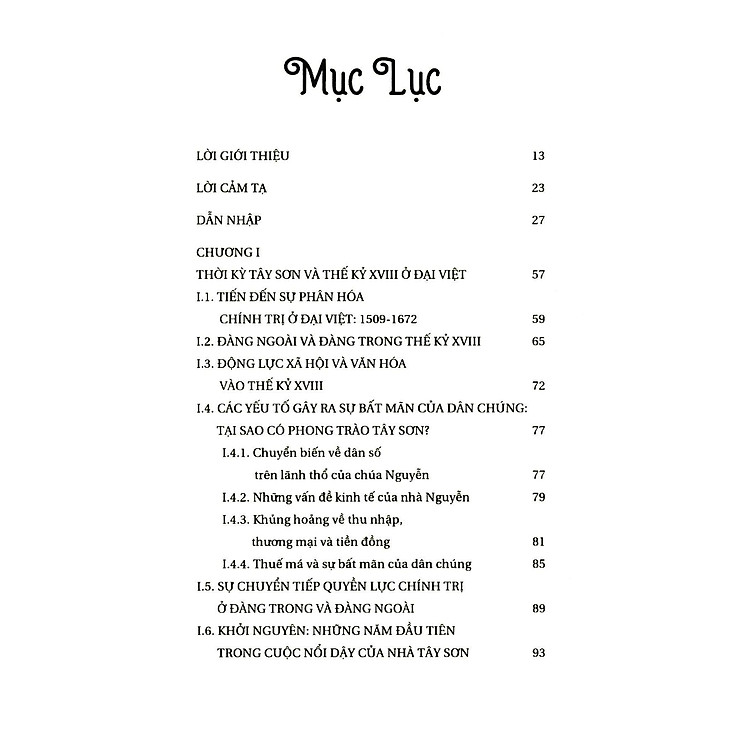 Lâu nay, chúng ta đọc về nhà Tây Sơn, biết về họ như là một phong trào nông dân nổi lên chống lại chúa Nguyễn, tuy nhiên sử liệu trong nước có phần bị thiên lệch, một chiều. Sách cho chúng ta một cái nhìn mới mẻ về triều đại này, nhiều thông tin mà các sách sử về Tây Sơn trong nước trước đây chưa cung cấp được. Giấy đẹp, in sắc nét.